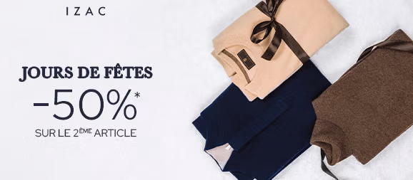 Jusqu'à -60% en boutique et sur izac.fr. Offre valable du 11/06/2025 au 24/06/2025 inclus, hors parfum et hors cartes cadeaux.